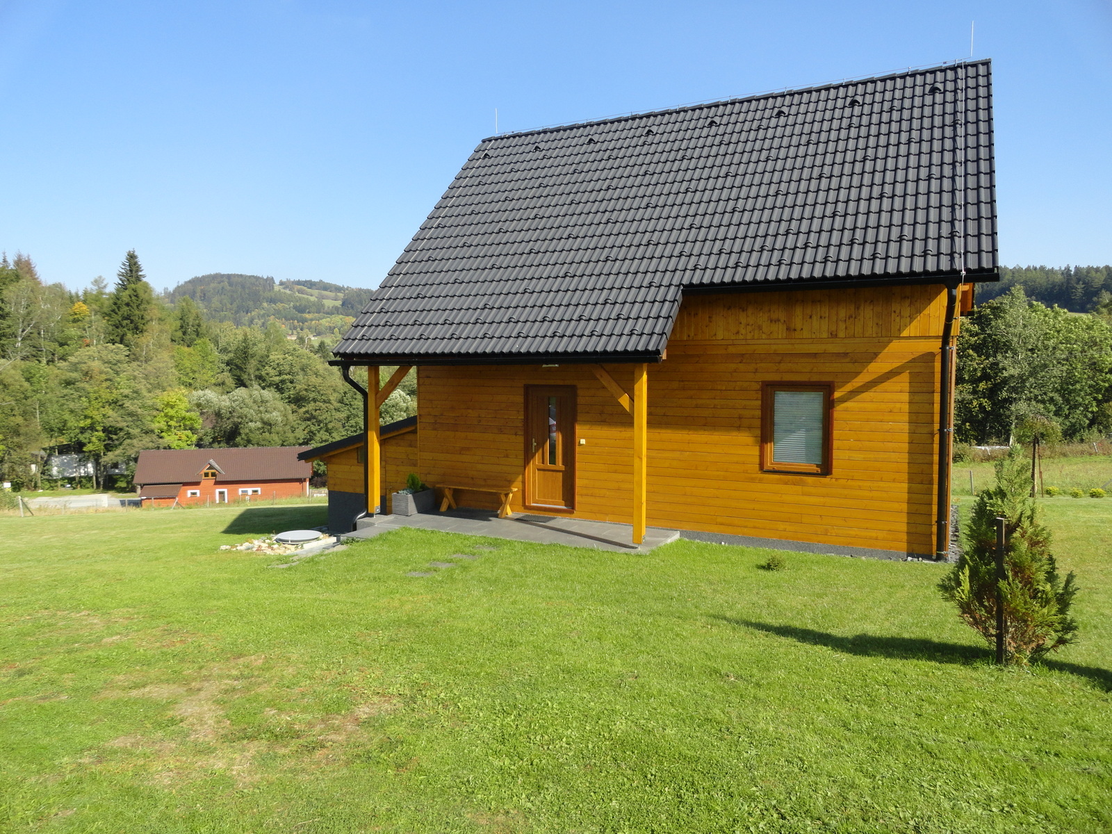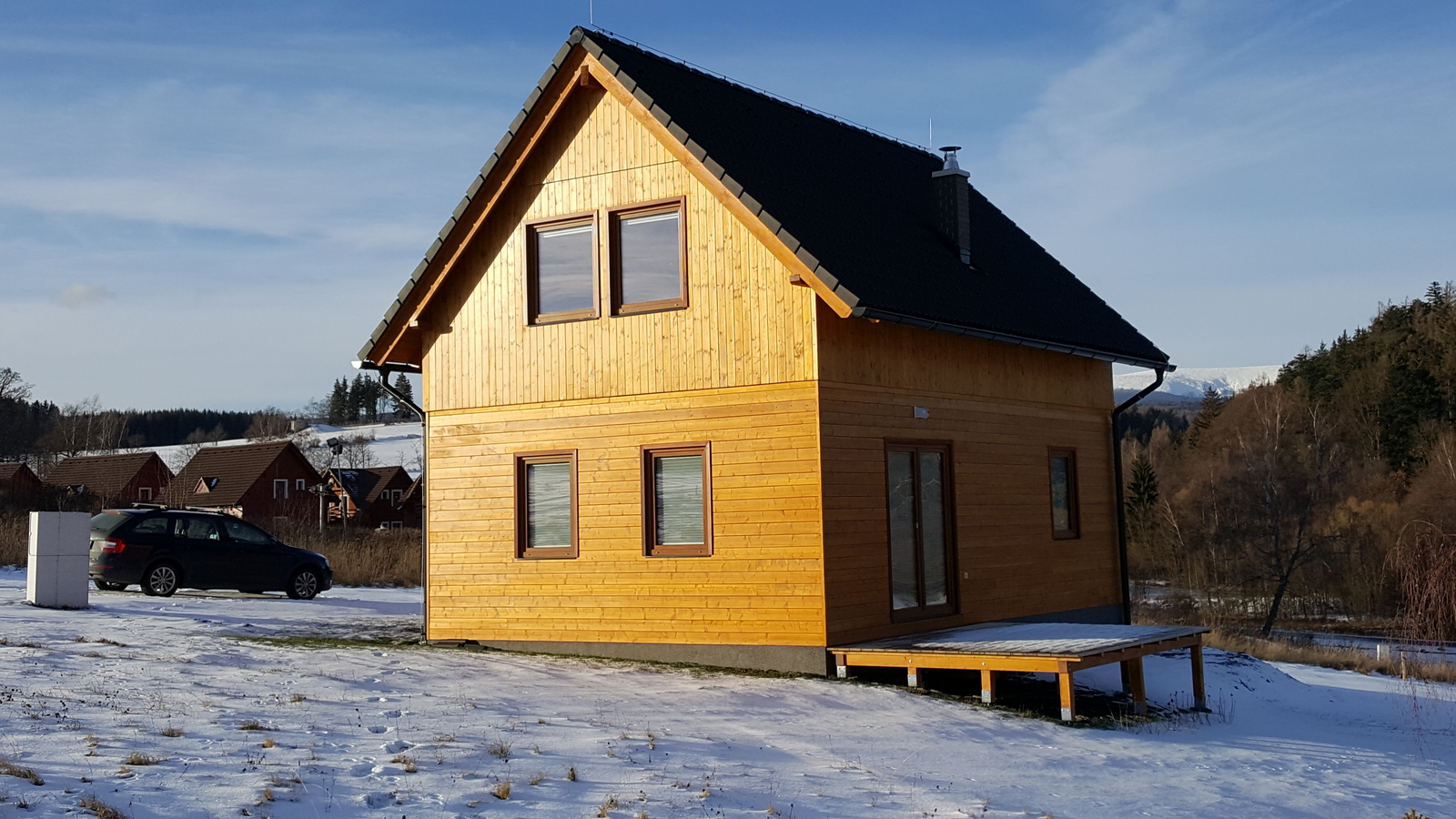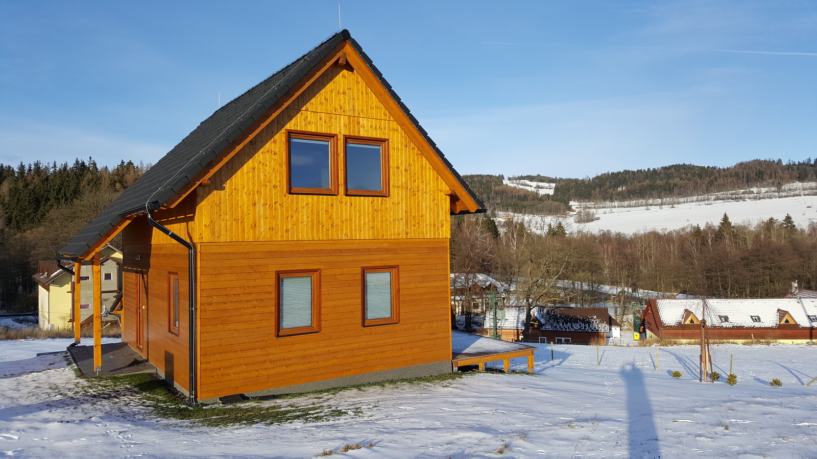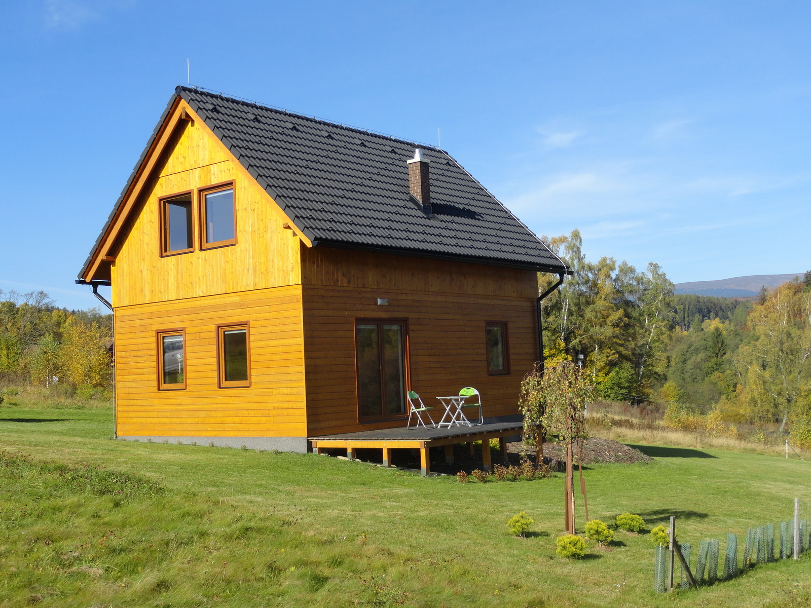 Chata je nově dokončená.