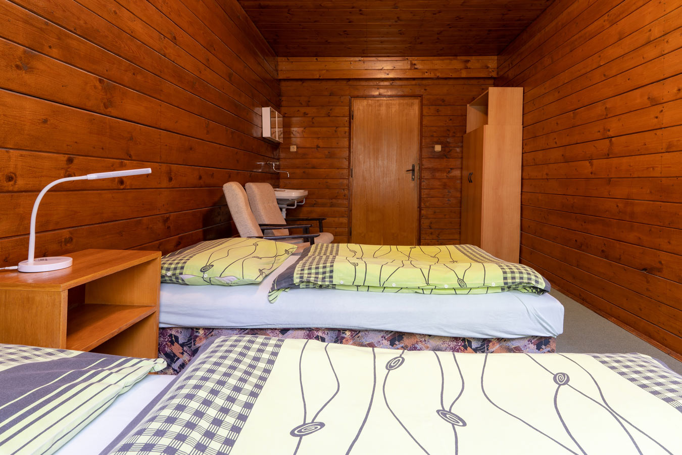 Chatu pod Kamzíkem najdete naproti areálu Ski aréna Karlov. Poskytuje ubytování v 10 pokojích až pro 43 hostů. Všechny pokoje mají standardní turistické vybavení a každý navíc vlastní umyvadlo. Sociální zařízení je společné, rozdělené na dámy a pány. Centrální kuchyně s jídelnou poslouží k vlastnímu vaření. Prostorné společenské místnosti využijete k setkání, hrám i zábavě. Vezměte přátele nebo rodinu a rezervujte si celou chatu pro sebe nebo si rezervujte jednotlivý pokoj. Chata pod Kamzíkem je vedlejší budovou hotelu Kamzík (250 m). Využijete sportoviště, vnitřní bazén i wellness centrum. Stravování je možné také dokoupit v hotel Kamzík.