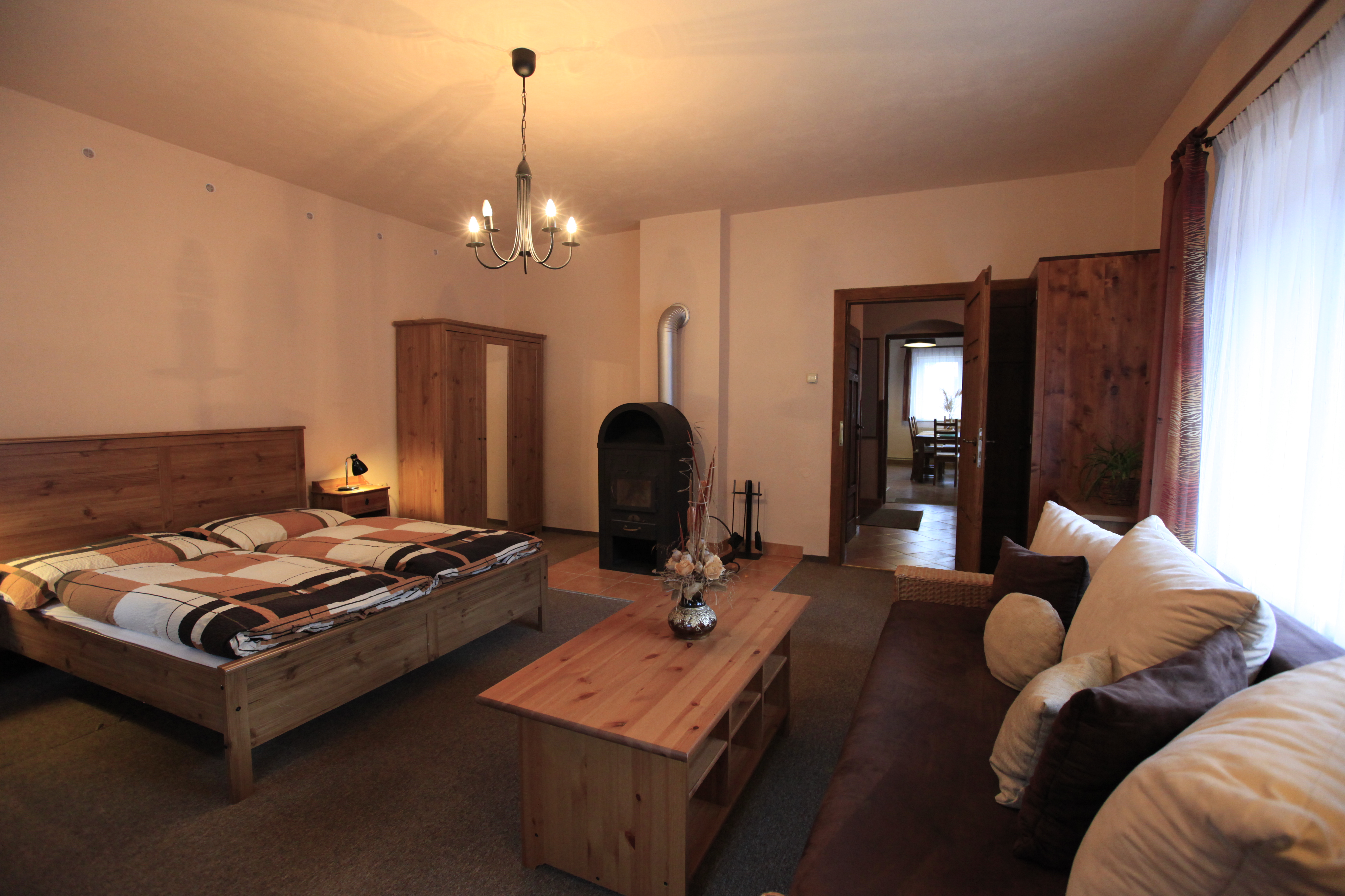 Chata Slunce/Karlov pod Pradědem - nově zrekonstruovaná horská chata přímo u vleku s kapacitou až 12 osob. Vybavená kuchyň, 3 ložnice BTV + SAT + DVD + neomezený internet, 2 samostatné sociální zařízení, venkovní posezení s grilem a posezením, soukromé parkování až pro 4 auta. Bonus - neomezený vstup do Aquacentra Slunce v Rýmařově v ceně pobytu.