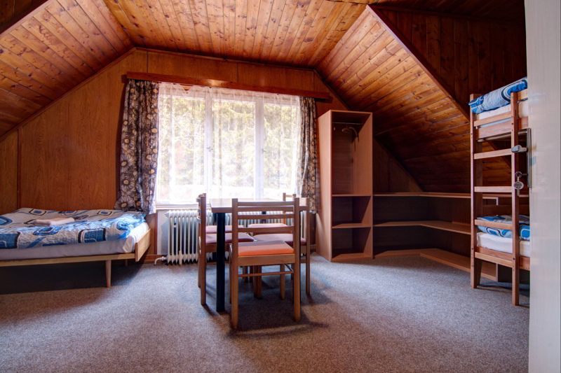 Chata prošla rekonstrukcí a tak na vás čekají nově vybavené pokoje. Přímo u chaty je prostorné bezplatné parkoviště. Chata disponuje také stylovou restaurací, posilovnou, hrnou pro děti, saunou a společenskou místností, kde se můžete zahřát u krbu. V celém objektu je dostupné WiFi připojení zdarma.