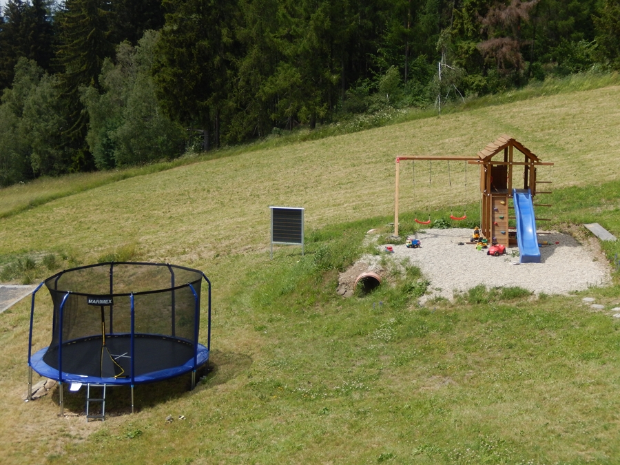 K dispozici jsou vám 4 apartmány pro 4 - 6 hostů. Každý apartmán má obývací pokoj s jídelní částí a plně vybavenou kuchyňskou linkou, koupelnu s rohovou vanou, ložnici se 4 lůžky, přistýlka je v obývacím pokoji. Apartmány jsou vybaveny hračkami pro děti. Na požádání připravíme dětskou jídelní židličku, či postýlku. K dispozici jsou venkovní uzamykatelné kóje pro uložení sportovního vybavení. Vedle apartmánů je soukromé dětské hřiště s houpačkami, skluzavkou, pískovištěm, podzemní rourou, trampolínou a ruskými kuželkami. V zimě je možné bobování přímo na louce u apartmánů. Vzdálenost Skiareálu Karlov je 6,5 km, Skiareál Čerťák je jen 800 m od apartmánů.